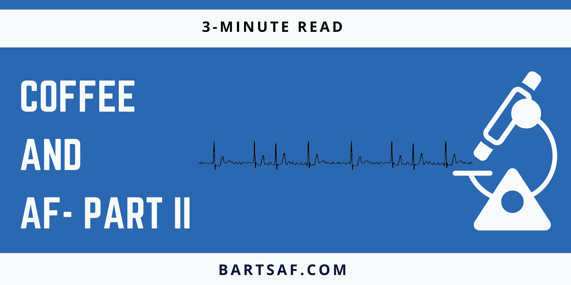 I want to revisit the relationship and recommendations about coffee and AF. In May we looked through the existing data on this. Ultimately, the evidence was lacking to suggest any increased AF risk from drinking up to 5 cups of coffee per day. This is important because many patients are advised to cut out "coffee and alcohol" if they have intermittent AF, but if you dig into the data, the evidence isn't really there.