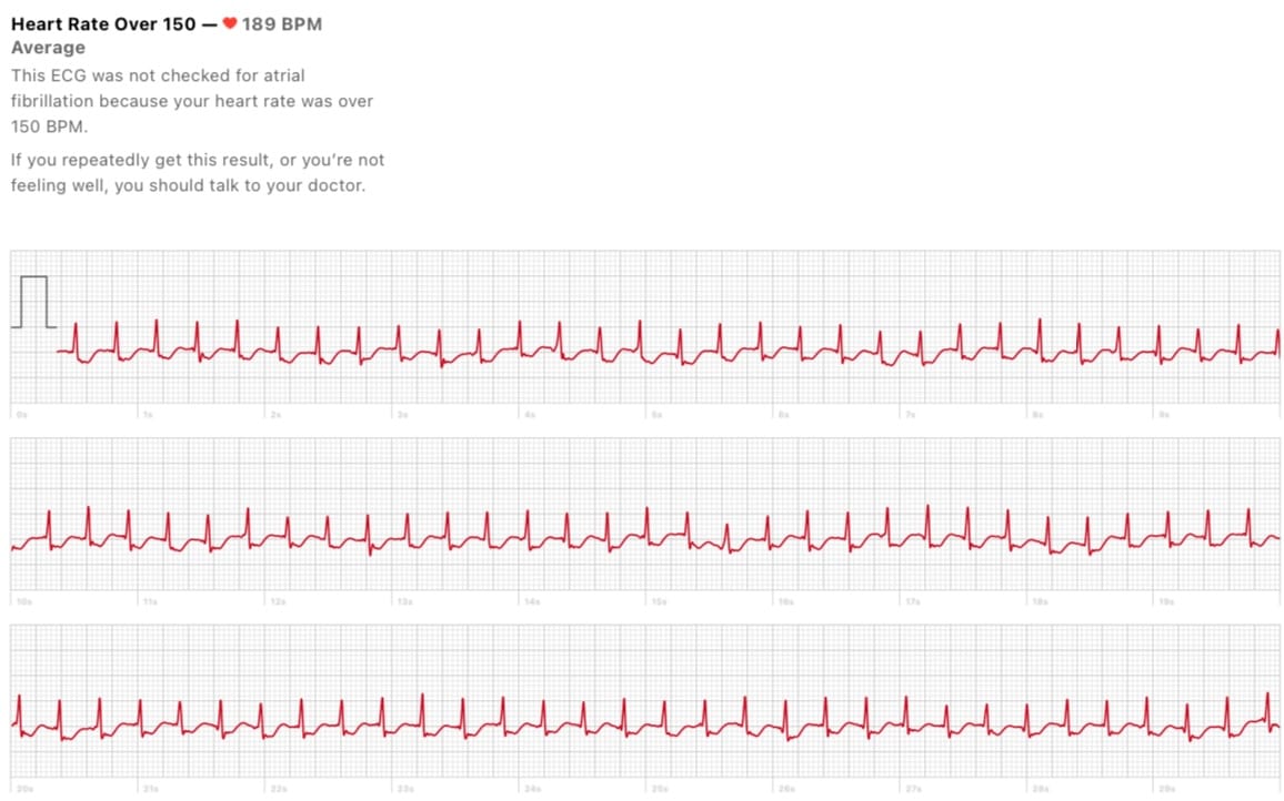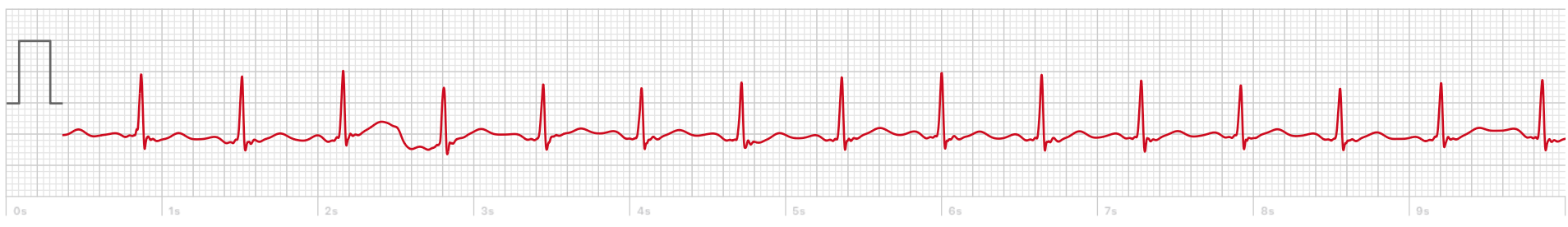 A standard hospital ECG typically captures 10 seconds of heart rhythm data data. Consumer devices, such as the Apple Watch, usually record over 30 seconds.